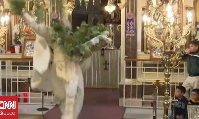 Λίγο μετά τις 8.30 το πρωί του Μεγάλου Σαββάτου (11/04) μετέφερε το μήνυμα της Ανάστασης με το χαρακτηριστικό σάλτο του και πέταξε βάγια στους πιστούς.