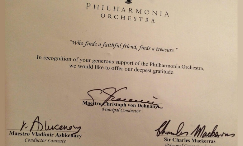 Η Philharmonia του Βασιλιά Καρόλου τίμησε τη Χρυσάνθη Λεμού - Newsbeast play Το δώρο που της προσέφερε για τη στήριξή της εδώ και χρόνια !function(f,b,e,v,n,t,s) { if(f.fbq)return;n=f.fbq=function(){n.callMethod? n.callMethod.apply(n,arguments):n.queue.push(arguments)}; if(!f._fbq)f._fbq=n;n.push=n;n.loaded=!0;n.version='2.0'; n.queue=[];t=b.createElement(e);t.async=!0; t.src=v;s=b.getElementsByTagName(e)[0]; s.parentNode.insertBefore(t,s) } (window, document,'script', 'https://connect.facebook.net/en_US/fbevents.js'); fbq('init', '821299762001567'); fbq('track', 'PageView'); Source link