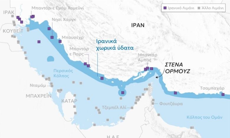 O χάρτης του ναυτικού αποκλεισμού των ΗΠΑ στο Ιράν