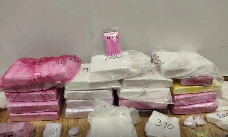 Αναλυτικά, συνελήφθησαν ένας 38χρονος, ένας 34χρονος και μία 32χρονη, στην κατοχή των οποίων εντοπίστηκαν πάνω από 26,5 κιλά κοκαΐνης, περισσότερα από οκτώ κιλά κατεργασμένης κάνναβης, 454 γραμμάρια ακατέργαστης κάνναβης, 24,6 γραμμάρια ροζ κοκαΐνης και πάνω από 4,5 κιλά MDMA.